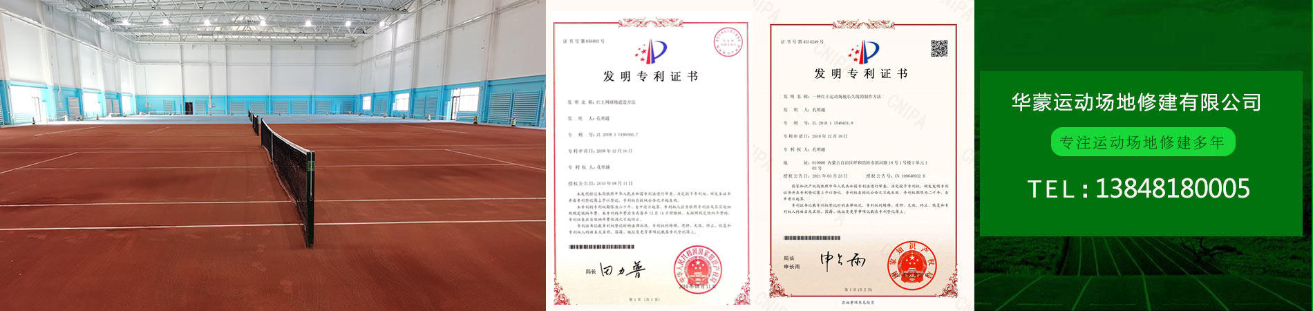 "紅土網(wǎng)球場(chǎng)地建造方法”獲得了實(shí)用專(zhuān)利技術(shù)證書(shū),解決了紅土場(chǎng)地長(zhǎng)畫(huà)線(xiàn)及畫(huà)線(xiàn)難的問(wèn)題;產(chǎn)品綠色環(huán)?!ㄟ^(guò)權(quán)威認(rèn)證機(jī)構(gòu)無(wú)毒環(huán)保檢驗(yàn)。
